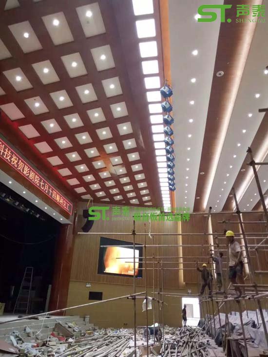 貴州從江歌劇院吸音項目經過甲方多倫篩選和來工廠實地考察,由于我司各方面都表現優秀,并且符合工地的各項指標的要求!最終甲方與我司簽訂合同。該項目共采用28/4防火槽木吸音板2600余方,目前工地正在緊急安裝中!明天(2016/7/14)安裝完畢并正式營業