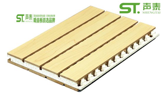 28-4阻燃槽木吸音板是一種在密度板正面開槽,背面穿孔的狹縫共振吸聲材料。槽木吸音板對吸聲頻譜選擇性很強,對中低頻有很好的吸聲性能。如在吸聲結構后空腔上填入適量的吸聲棉可提高中、高頻吸聲效果。