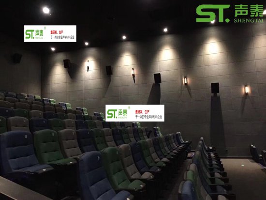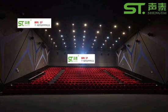 該項目共采用‘聲泰’牌阻燃環保聚酯纖維吸音板4800㎡,規格為:2420*1220*9mm,環保等級E1級,阻燃等級B1級,2016年已經完工,目前投入使用已經1年多,湖南地區客戶可去現場參觀指導,株洲千金影院引導地址:湖南株洲蘆淞區 建設中路七號