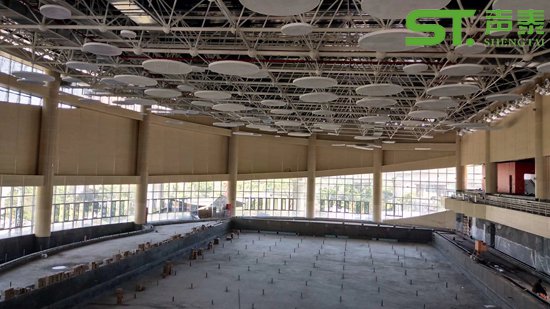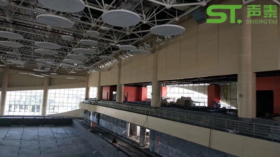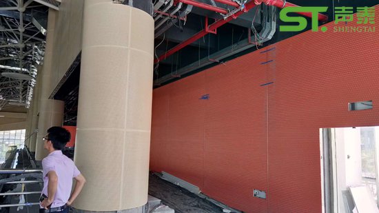 以上案例圖片版權歸‘聲泰’所有,以上工程案例圖片由我司聲學設計師,工程部總監,福建轄區業務員現場跟拍,目前現已到了施工結尾階段,該項目共采用‘聲泰’牌玻鎂復合防潮吸音板3600㎡,環保松木吸聲板700㎡,圓弧空間吸聲體500個。聲泰品牌!品質保證。