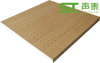 穿孔木吸音板是一種在高密板的正面,背面都開圓孔的結構吸聲材料,不僅具有傳統裝飾,隔熱,防火,防塵,質輕,不改性,不腐爛等特點,更具有吸聲效果佳,強度高,裝飾性好,施工方便,環保性能更優等特點,該產品填補裝飾行業中高檔吸聲材料的空白,使業主和設計師在選用聲學材料時有更多的選擇,順應了現代裝修中回歸自然,崇尚木質感覺的潮流。