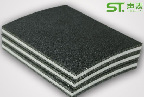 (2)三層復合結構,高密度面層防止施工過程中的意外破損影響隔音效果;