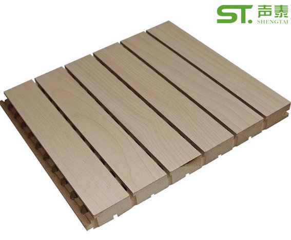 槽孔吸音板是一種在密度板的正面開槽、背面穿孔的狹縫共振吸聲材料,既有木裝飾本身的裝潢效果,又有良好的吸聲性能。一般用于演播室吸音、KTV廂房吸音、機場吸音、會議室吸音、寫字樓吸音、影院吸音、室內體育場館吸音等娛樂建筑裝飾聲效施工。