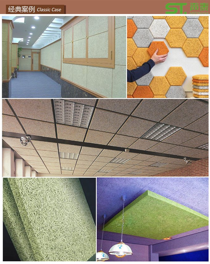 電影院、劇院、音樂廳、廣播電臺播音室,禮堂,酒店、會議室、圖書館、研究室、實驗室、夜總會、健身房、體育場館、教堂、學校、幼兒園、 保齡館、生產車間、其他需要吸音和處理噪音的地方均可使用。