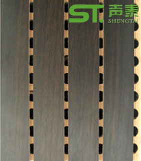 (1)木質吸音板分槽木吸音板是一種在高密度板的正面開槽、背面穿孔的狹縫共振吸聲材料;通常用于墻面裝飾和吸聲降噪。