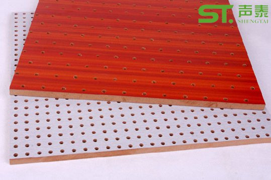 孔木吸音板是一種在高密板的正面,背面都開圓孔的結構吸聲材料,不僅具有傳統裝飾,隔熱,防火,防塵,質輕,不改性,不腐爛等特點,更具有吸聲效果佳,強度高,裝飾性好,施工方便,環保性能更優等特點,該產品填補裝飾行業中高檔吸聲材料的空白,使業主和設計師在選用聲學材料時有更多的選擇,順應了現代裝修中回歸自然,崇尚木質感覺的潮流。