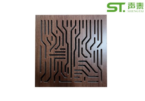 聲泰聲學環保會議室定制吸音板選用優質的中纖板、具有環保、防火、防水等功能,飾面色彩及 材料選擇性廣,能極好地滿意客戶多樣化的聲學及裝修需要。較槽木吸音板,孔木吸音板相對立撞擊能力強。