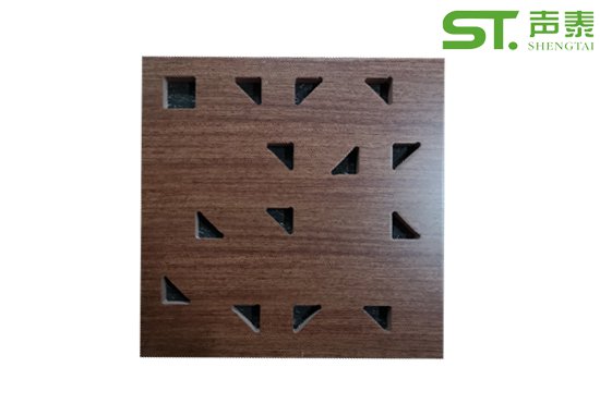 聲泰聲學環保多功能廳定制吸音板選用優質的中纖板、具有環保、防火、防水等功能,飾面色彩及 材料選擇性廣,能極好地滿意客戶多樣化的聲學及裝修需要。較槽木吸音板,孔木吸音板相對立撞擊能力強。