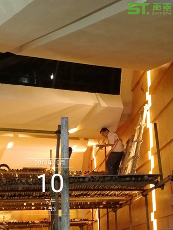 聲泰【工程部】施工團隊演藝中心mls木質擴散體安裝施工現場