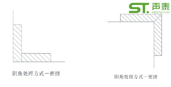 2.外墻角(陽角),45°密拼(吸音板現場裁切)