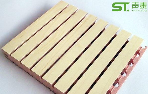防火木質吸音板木質吸音板最常見的有槽木吸音板、孔木吸音板二種吸音材料,槽木吸音板是用密度板在正面和反面經行開槽和開孔使材料具有吸音和裝飾效果,孔木吸音板也是由密度板經行貼面后開孔的。阻燃木質吸音板最關鍵的二個步驟使他具有防火阻燃效果是在于,我們生產的原材料密度板是經過防火劑的浸泡,第二點是木質吸音板背后有一層的防火,那層黑氈是具有防火和阻燃的效果。