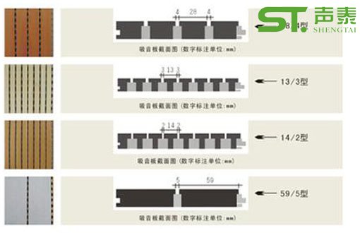 在實際統計使用中,我們稱呼吸音板的尺寸為吸音板的名義尺寸,這是為了方便實際中天花吊頂的設計及吸音板的使用。常見吸音板規格的名義尺寸有 300*600mm、600*600mm、600*1200mm,這些常用于普通方形天花吊頂,300*600mm規格多用于礦棉粘貼板吊頂;現在更流行 的條形吸音板名義尺寸有:300/400/600mm*1200/1500/1800/2100/2400mm等,在吸音板的厚度上,根據實際需要以及廠 家的生產能力,通常有9mm、14mm、15mm、16mm、18mm、19mm、20mm等。