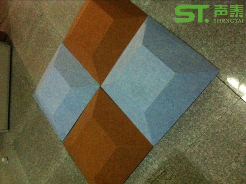 凹凸型聚酯纖維吸音板其實也可以叫聚酯纖維吸聲體,只是每個地方與人的叫法不同而已。凹凸型聚酯纖維吸音板是近兩年隆重才推向市場,也是比較熱銷的一款吸音材料。相信很多人就只知道聚酯纖維吸音板而凹凸型聚酯纖維吸聲體可能就只聽過沒見過,現在由我展示下凹凸型聚酯吸聲體的圖片以及詳細的介紹一下它的特點。