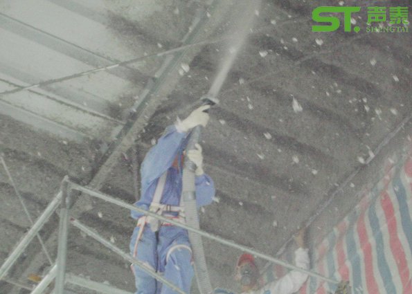 防火植物纖維吸音噴涂現場施工圖