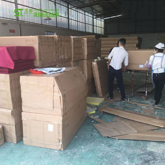 木質品生產車間正在緊急趕貨云南某劇場a級防火陶鋁吸音裝飾板(圖一)
