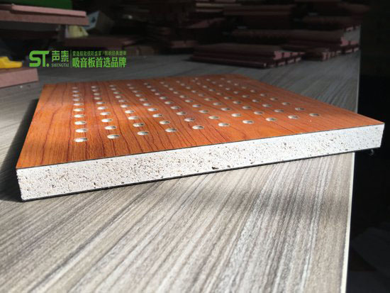 專利技術生產的玻鎂不燃防火吸音板,其吸音原理一是在材料本身內形成多孔結構,達到一定的吸聲效果,其二是在成品板上通過開糟、鉆孔形成穿孔板。