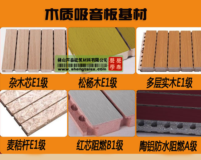 吸音板材質:普通咋木板,聚酯纖維、玻璃纖維、環保松木板,防火阻燃板,玻鎂板,陶鋁板,實木板,多層板