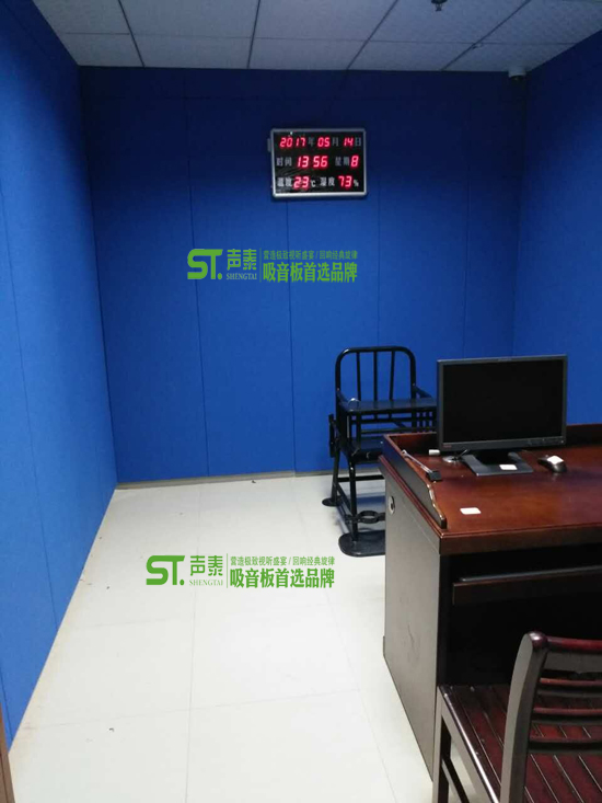 佛山聲泰5月最新公安局審訊室墻面防撞防火布藝軟包吸音板案例(福建漳州公安局審訊室吸音改造工程項目)目前已經全面完工,即將投入使用。聲泰防撞布藝軟包具有吸聲、環保、阻燃等性能,可提供聲學報告、環保報告、阻燃報告。