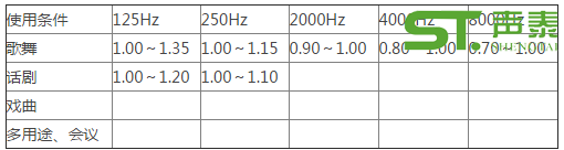 2、混響時間頻率特性,相對于500~1000HZ的比值宜符合下表規定: