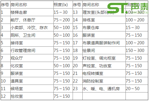 八、劇場各類房間照度的標準值符合下表《劇場照度標準值》的規定。