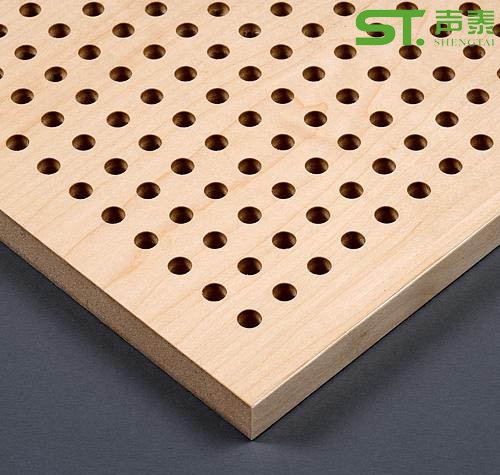 孔木吸音板是指板狀的具有吸音減噪作用的材料,孔木吸音板可分為穿孔吸音板和微孔吸音板。木質吸音板的吸音機理是薄板共振吸聲,在共振頻率上,由于薄板劇烈振動而大量吸收聲能。