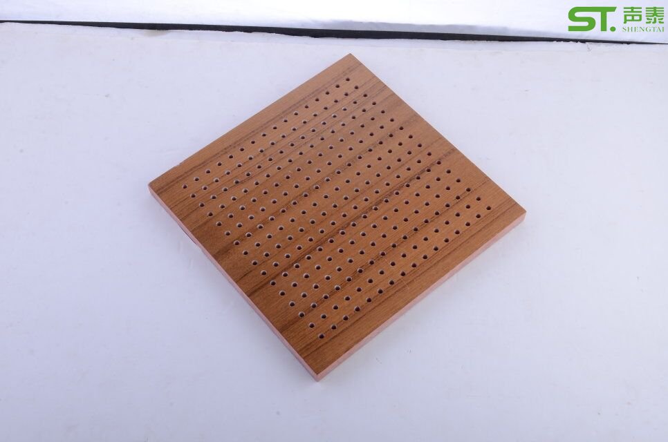 孔木吸音板是一種在密度板的正面,背面都開圓孔的結構吸聲材料;不僅具有傳統裝飾隔熱、防火、防塵、質輕、不改性、不腐爛等特點,更具有吸音效果佳、強度高、裝飾性好、施工方便、環保性能優等特點;該產品填補裝飾行業中高檔吸聲板材料的空白,使業主和設計師在選用聲學材料時有了更多的選擇,順應了現代裝修中回歸自然、崇尚木質感覺的潮流。