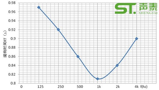 (二)600m2演播廳混響時間頻率特征曲線 :