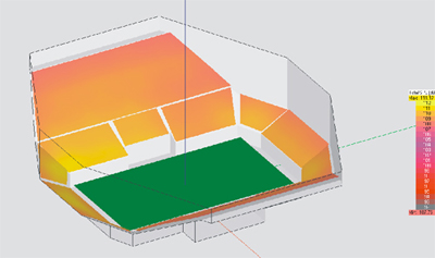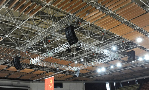 體育館擴聲系統必須保證全部看臺區域、比賽球場區域具有足夠的聲壓級聲場分布均勻以及較高的語言清晰度。因此,要達到足夠的聲壓級聲場分布均勻以及較高的語言清晰度指標。除了常規的設計考慮外,還要因地制宜、合理規劃。