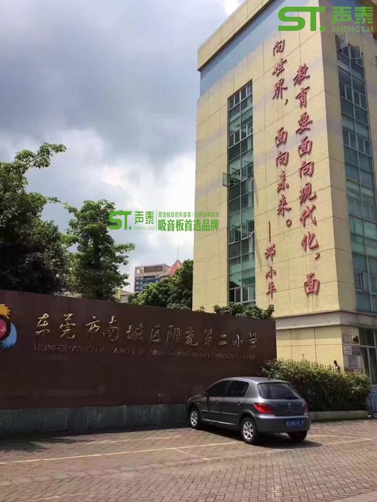 東莞南城陽光小學共使用‘聲泰’牌木質槽孔吸音板550㎡,阻燃B1級與環保E1級材質,飾面天然柚木,聲泰品牌!品質保證!打造優質聲學裝飾工程項目