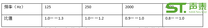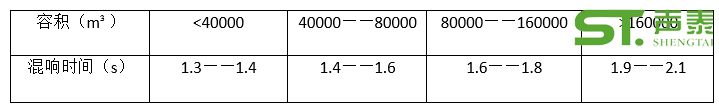 由于絕大多數體育運動都可以在綜合體育場館內進行,故綜合體育館比賽大廳的混響時間應適合于多數比賽項目的要求。根據《體育場館聲學設計及測量規程》JPJ/T 131——2012中規定,在頻率為500Hz——1000Hz時,不同容積比賽大廳的滿場混響時間宜滿足表1要求。各頻率混響時間相對于500Hz——1000Hz混響時間的比值宜符合表2的規定。