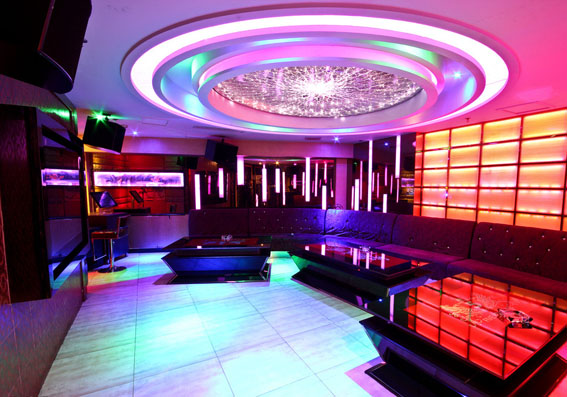 普通建議采用簡潔處置,在處置好吊頂骨架的強度的狀況下,特別是處置好音箱吊掛位的強度,并要作好記號,頂部采用石膏板,周圍采用石膏成型模塊,周遍采用輕巧的木制幾何構造襯底就可以了。這樣可以配合隱藏的三基顏色燈,相成光折射組合。