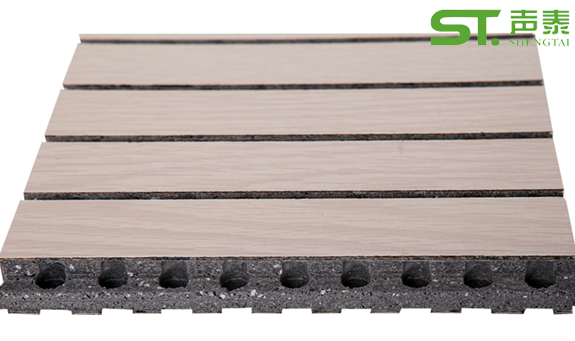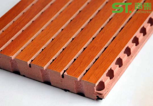 槽木吸音板是一種在密度板的正面開槽、背面穿孔的狹縫共振吸聲材料。常用于墻面或天花裝飾。15mm或18mm厚的MDF板材。木質吸音板通常用密度為720kg/cu.m的二級MDF 板料做成,亦可根據用戶要求使用一級的MDF板料。
