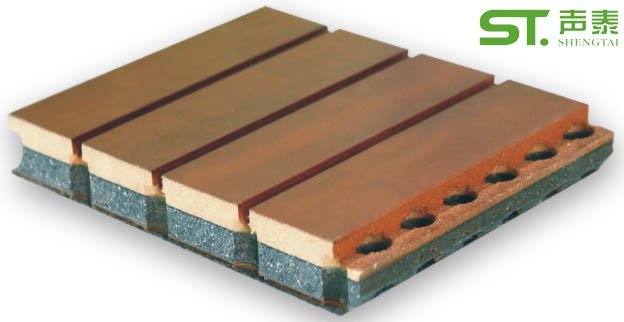 專利技術生產的陶鋁復合吸音板,其吸音原理一是在材料本身內形成多孔結構,達到一定的吸聲效果,其二是在成品板上通過開糟、鉆孔形成穿孔板。