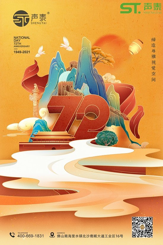 品牌聲學材料生產廠家,廣東聲泰聲學科技有限公司全體工作人員祝大家國慶快樂!
